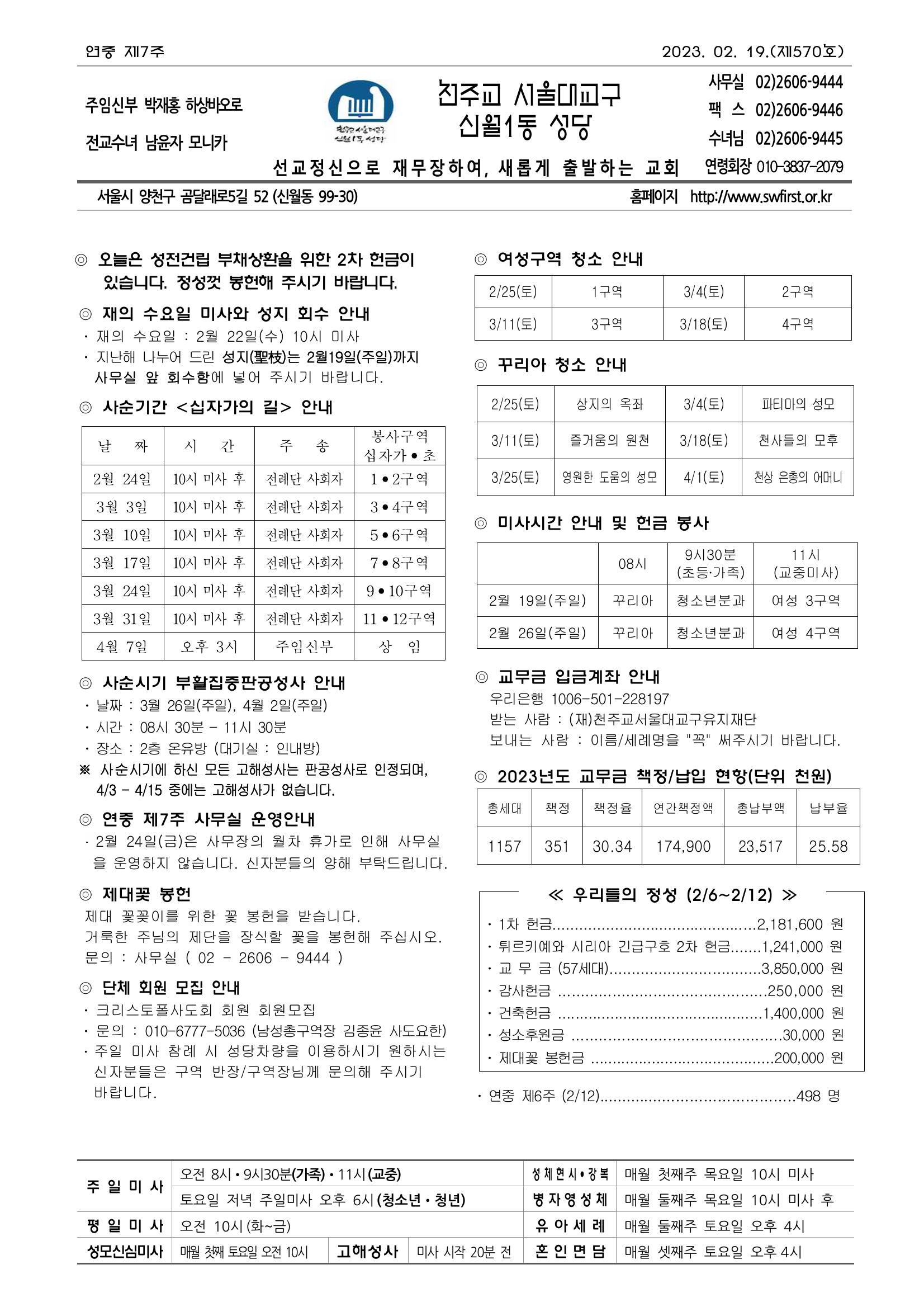 2023년 2월 19일 주보(연중 제7주) 페이지 정보 작성자 관리자 댓글 0건 조회 570회 작성일 23-02-18 09:49 목록 본문 댓글 0 댓글목록 등록된 댓글이 없습니다.