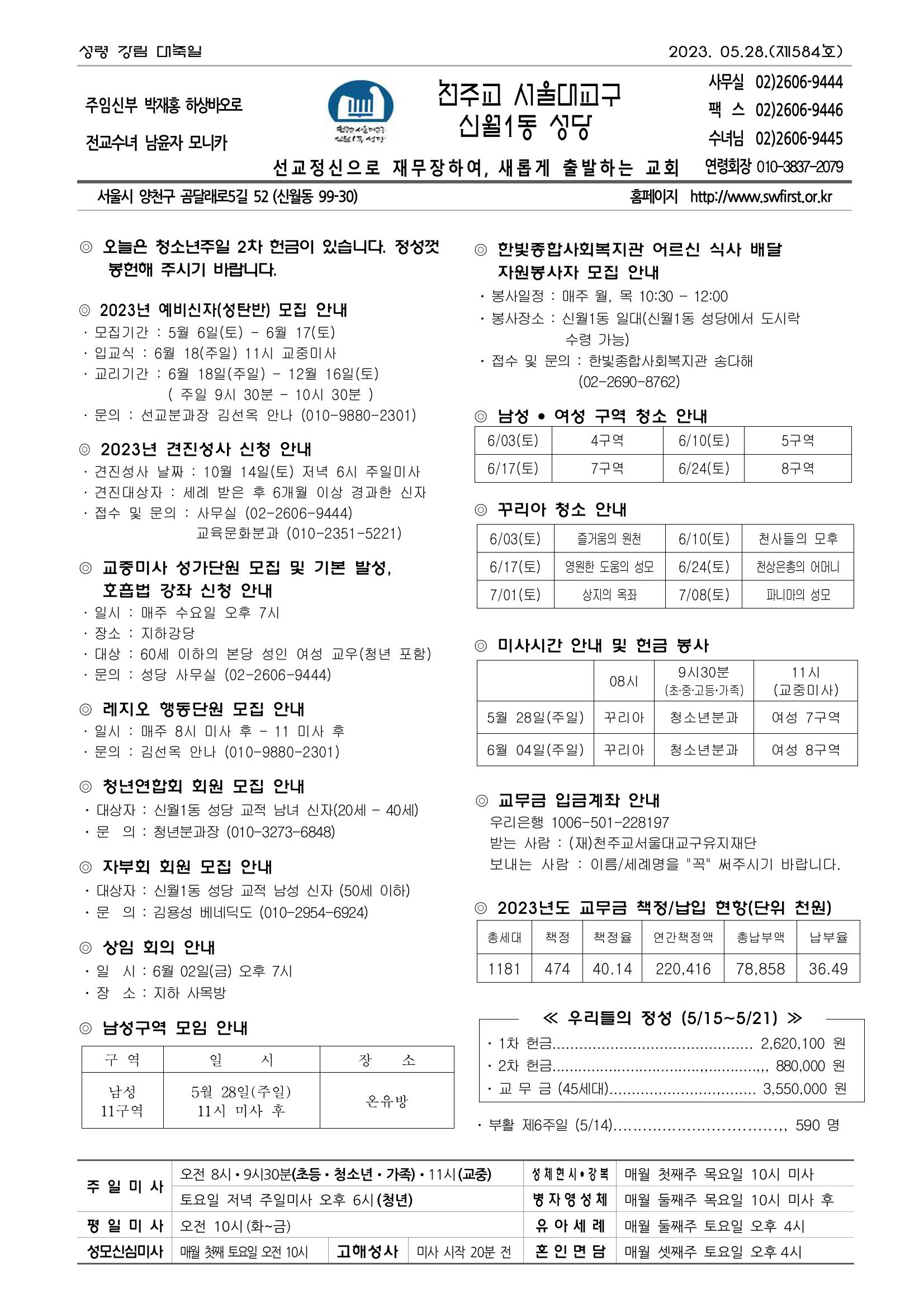 2023년 5월 28일 주보 (성령강림대축일) 페이지 정보 작성자 관리자 댓글 0건 조회 458회 작성일 23-05-26 08:48 목록 본문 댓글 0 댓글목록 등록된 댓글이 없습니다.