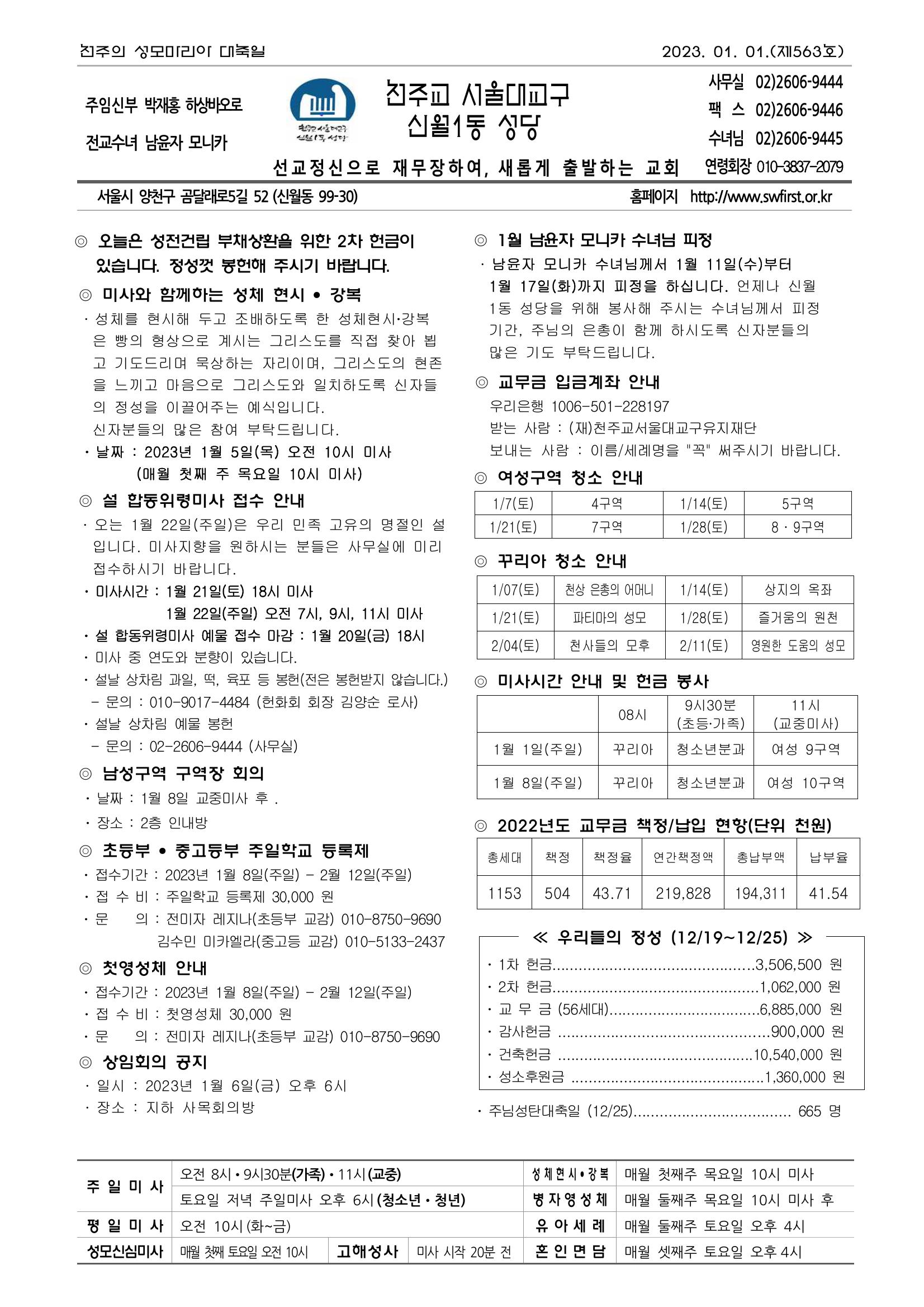 2023년 1월 1일 주보(천주의 성모마리아 대축일) 페이지 정보 작성자 관리자 댓글 0건 조회 500회 작성일 23-01-04 17:12 목록 본문 댓글 0 댓글목록 등록된 댓글이 없습니다.