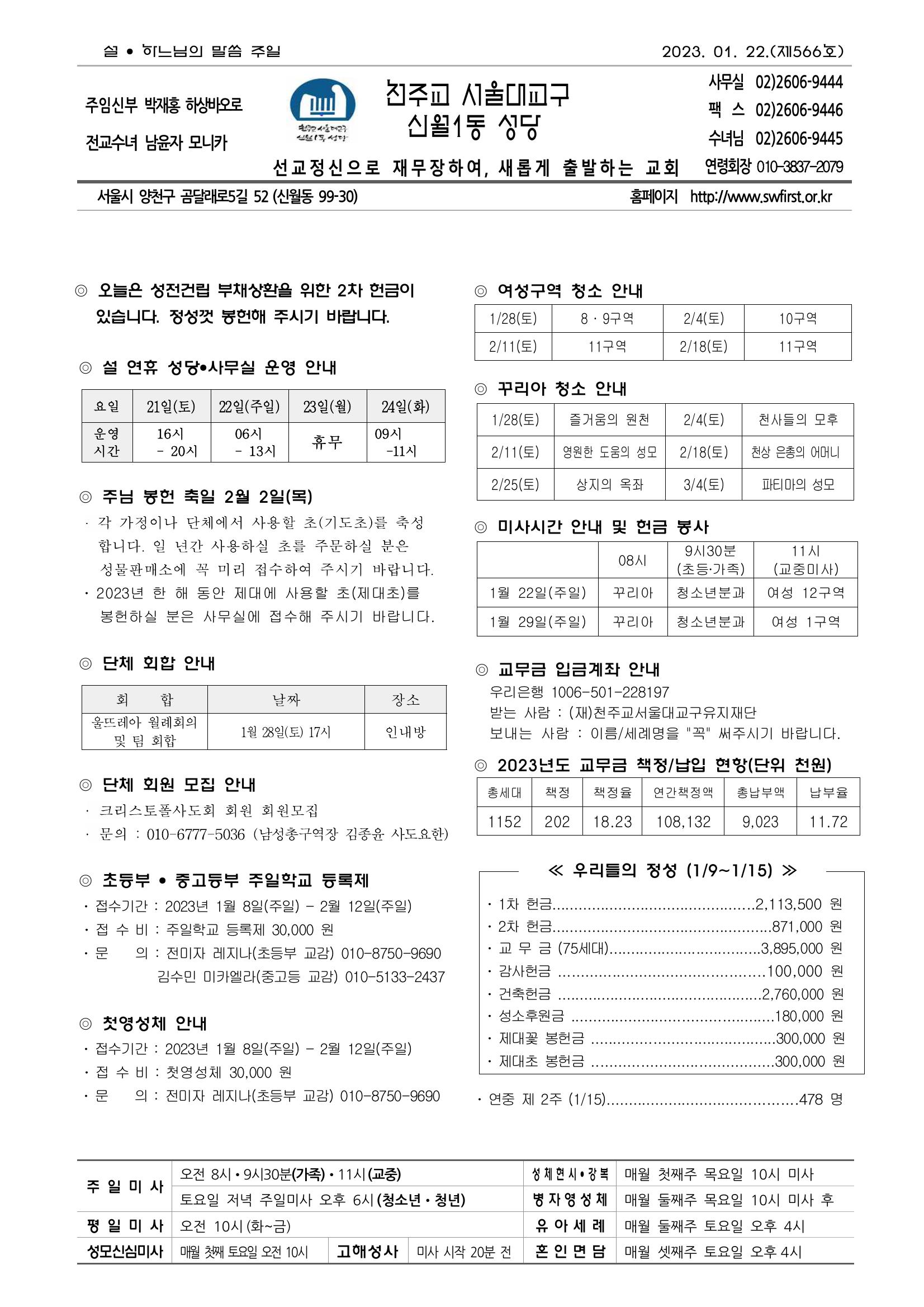 2023년 1월 22일 주보(연중 제3주) 페이지 정보 작성자 관리자 댓글 0건 조회 457회 작성일 23-02-11 09:47 목록 본문 댓글 0 댓글목록 등록된 댓글이 없습니다.