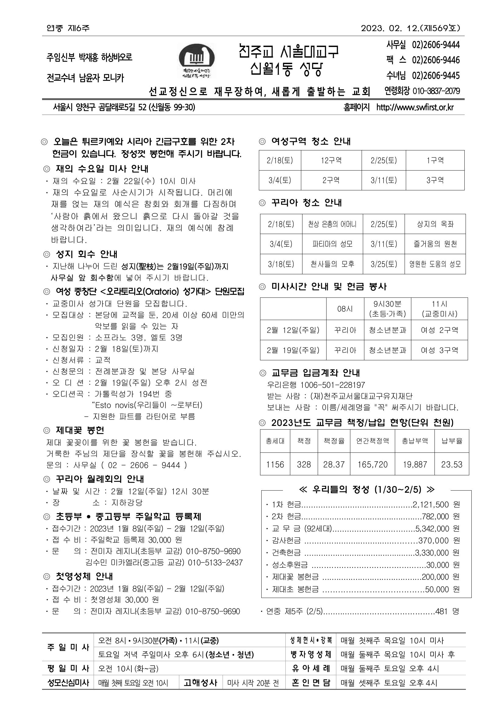 2023년 2월 12일 주보(연중 제6주) 페이지 정보 작성자 관리자 댓글 0건 조회 533회 작성일 23-02-11 09:57 목록 본문 댓글 0 댓글목록 등록된 댓글이 없습니다.