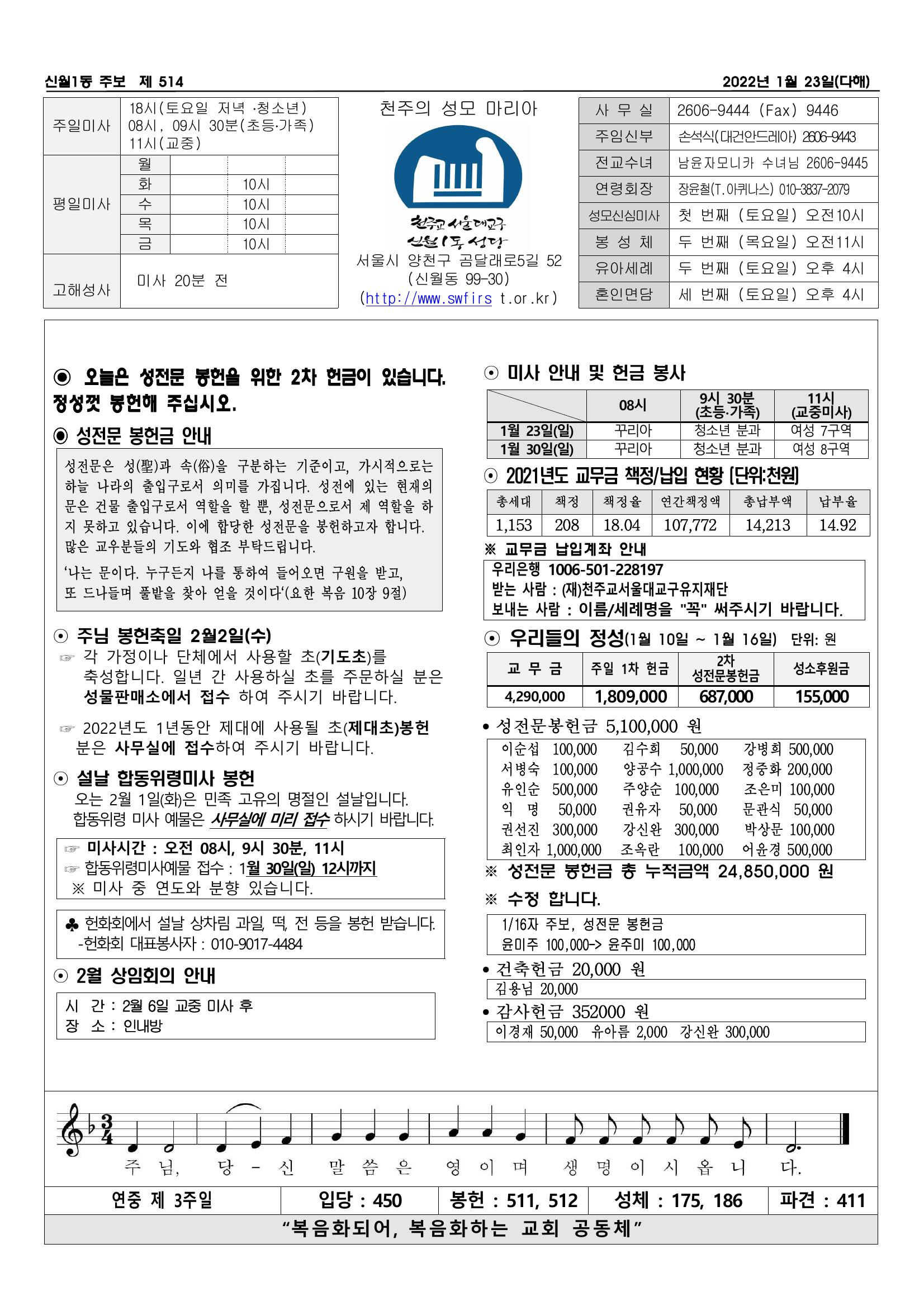 2022년 1월 16일 주보