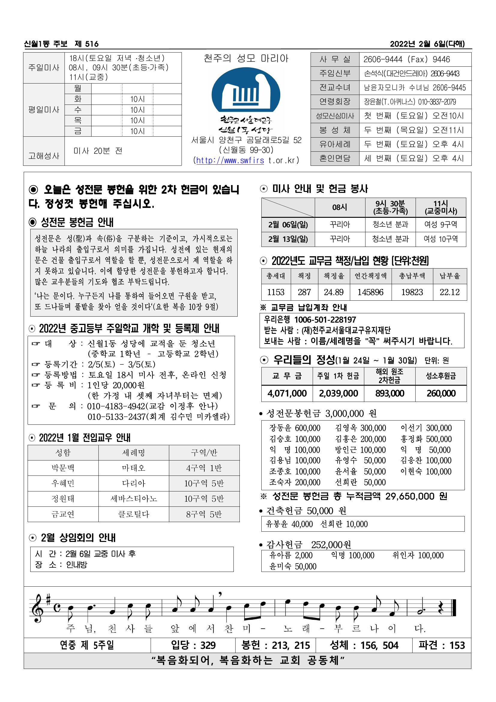 2022년 1월 16일 주보