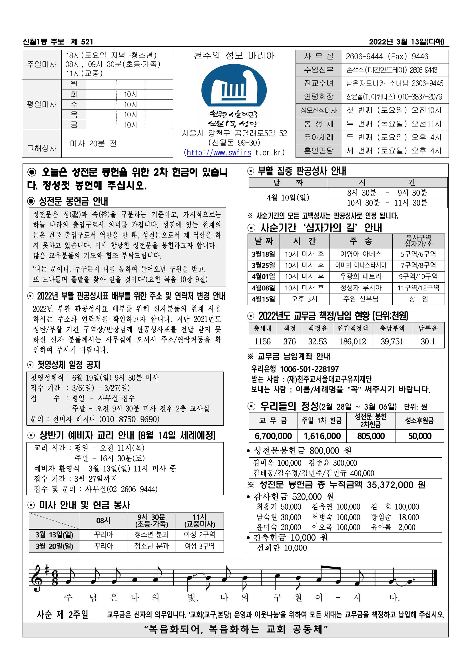 2022년 3월 06일 주보