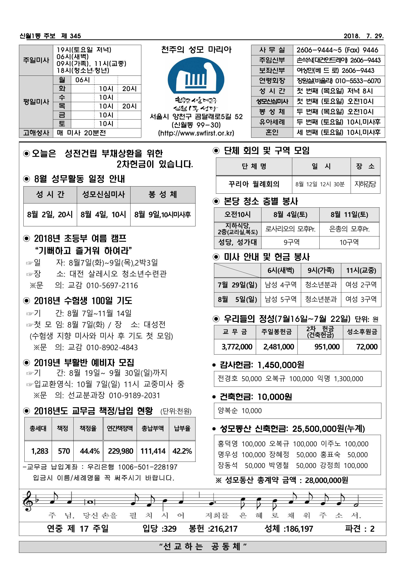 7월 29일 연중 제17주일 페이지 정보 작성자 jgy2982 댓글 0건 조회 625회 작성일 18-07-28 14:31 목록 본문 주일 성전건립 부채상환을 위한 2차헌금은 "춘천교구 성산성당" 성전건립 후원금 입니다. 댓글 0 댓글목록 등록된 댓글이 없습니다.