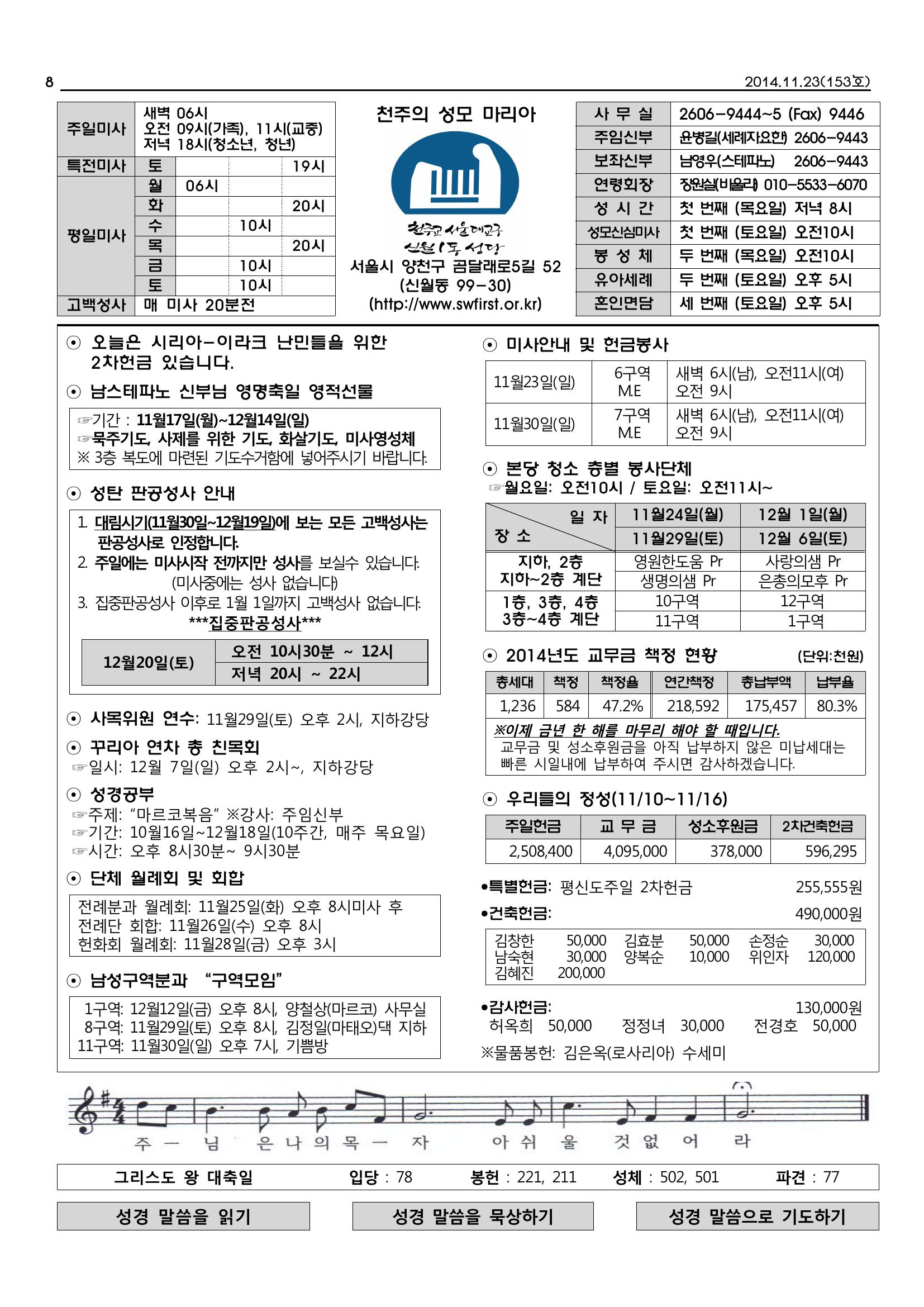 11월 23일 그리스도 왕 대축일(성서주간) 주보