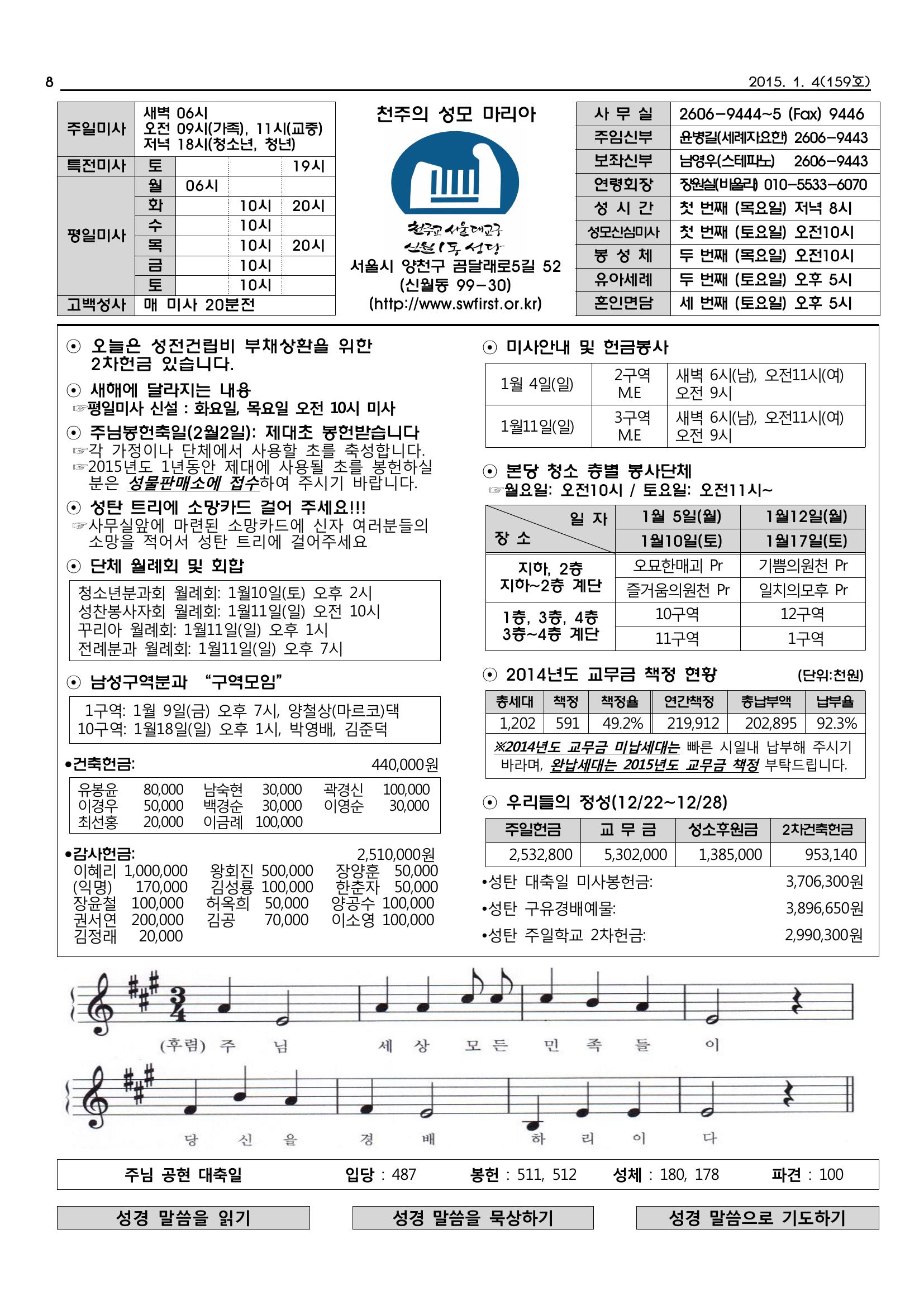 찬미 예수님! 교우 여러분, 새해 평화를 빕니다. 오늘은 2015년 새해 첫 주일이자