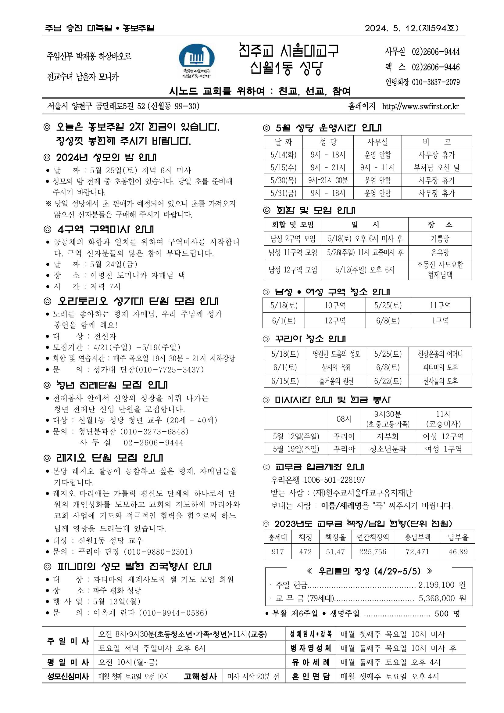 2024년 5월 12일 주님승천대축일(홍보주일) 페이지 정보 작성자 관리자 댓글 0건 조회 492회 작성일 24-05-11 14:23 목록 본문 댓글 0 댓글목록 등록된 댓글이 없습니다.