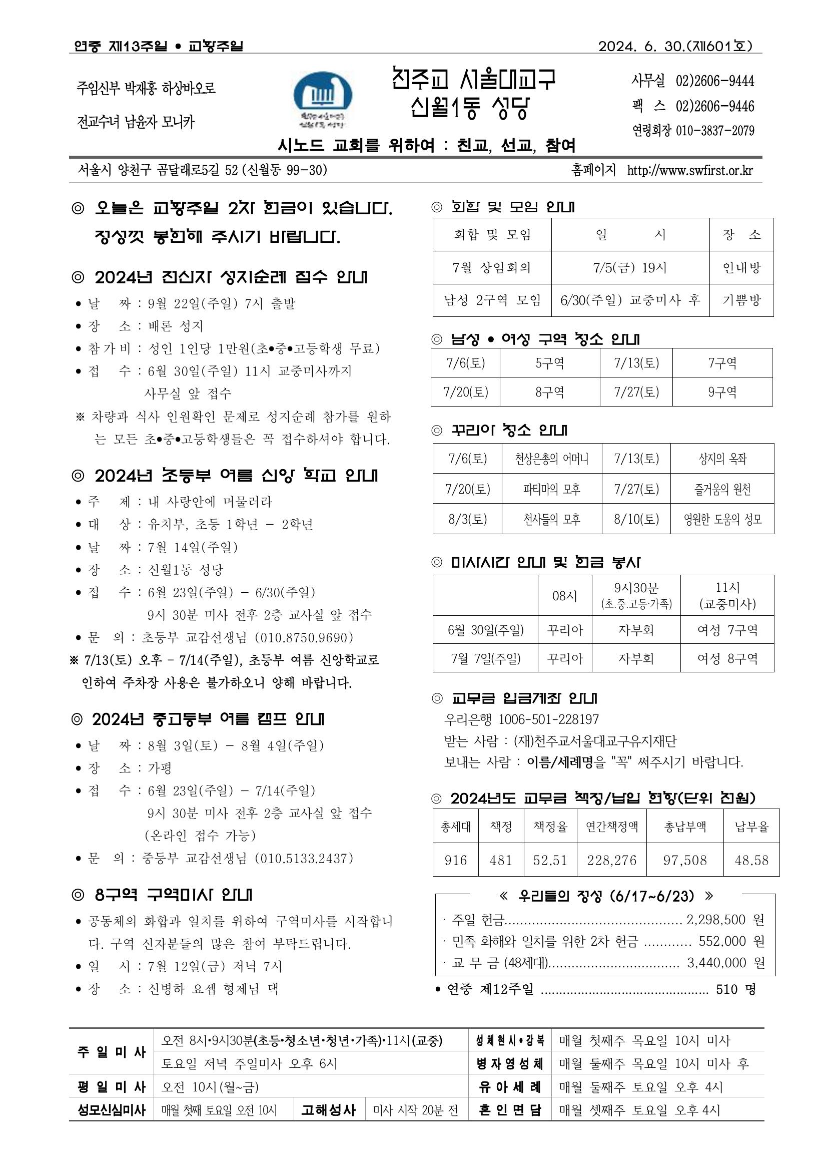 2024년 6월 30일 연중 제13주일(교황주일) 페이지 정보 작성자 관리자 댓글 0건 조회 473회 작성일 24-06-28 21:43 목록 본문 댓글 0 댓글목록 등록된 댓글이 없습니다.