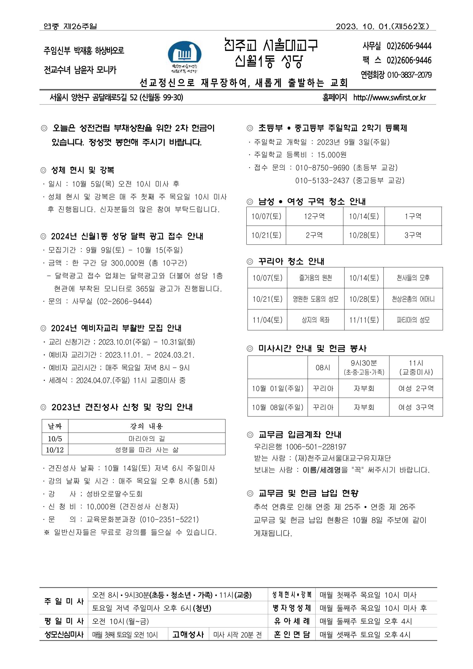 2023년 10월 1일 연중 제26주일