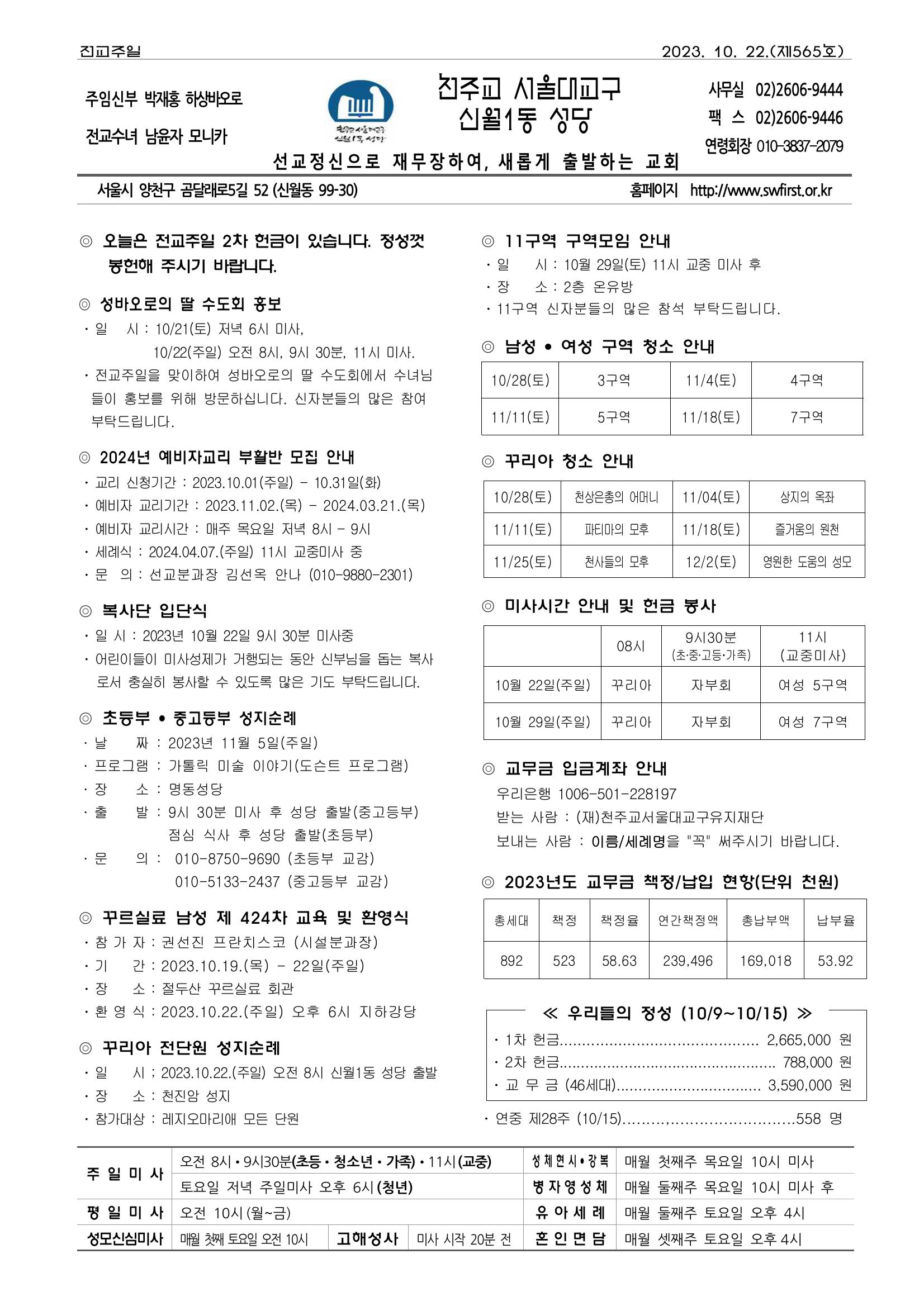 2023년 10월 22일 연중 제29주일 (전교주일) 페이지 정보 작성자 관리자 댓글 0건 조회 440회 작성일 23-10-20 09:12 목록 본문 댓글 0 댓글목록 등록된 댓글이 없습니다.