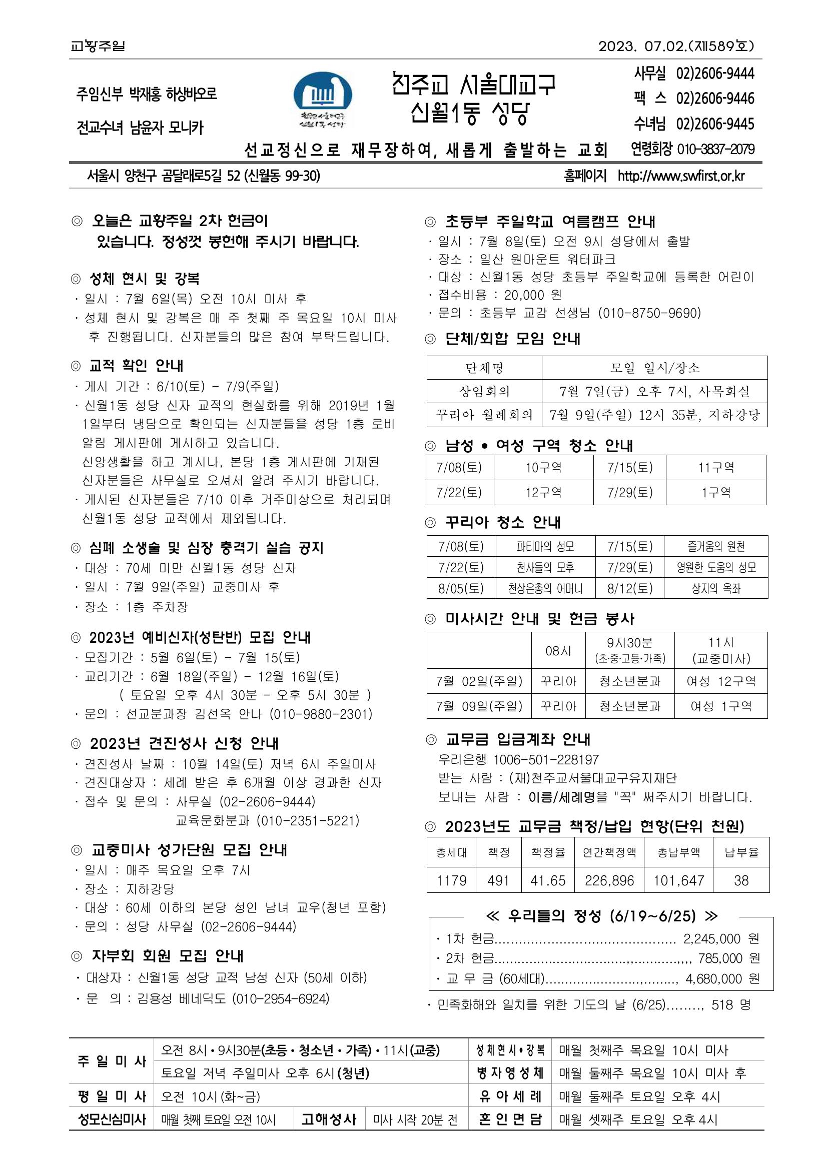 2023년 7월 2일 주보 (교황주일)