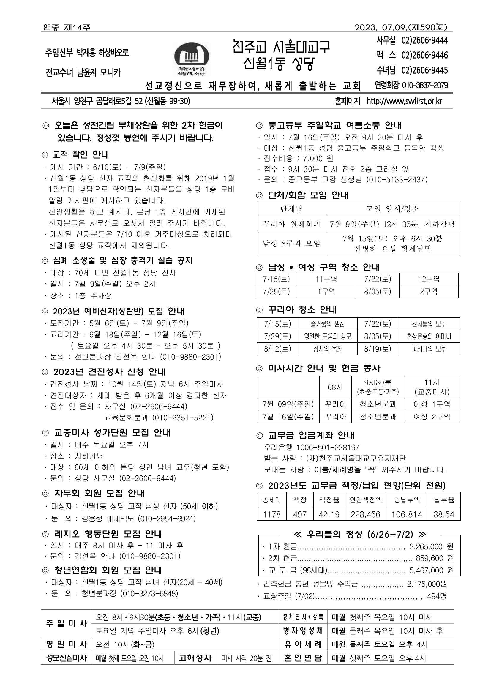 2023년 7월 9일 주보 (연중 제14주일) 페이지 정보 작성자 관리자 댓글 0건 조회 446회 작성일 23-07-06 22:03 목록 본문 댓글 0 댓글목록 등록된 댓글이 없습니다.