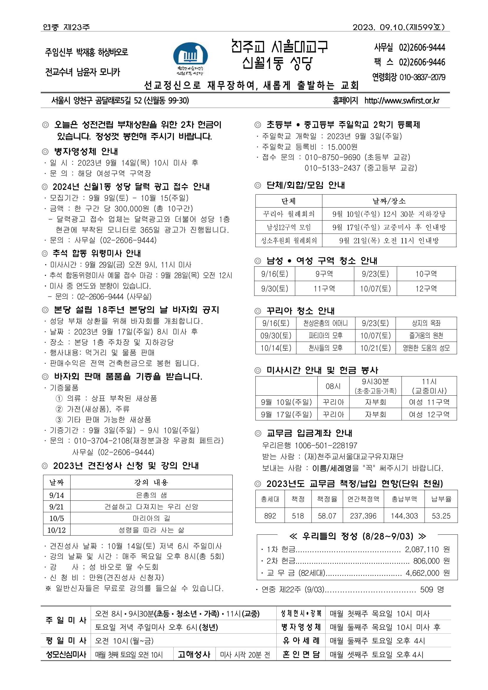 2023년 9월 10일 주보 (연중 제23주일) 페이지 정보 작성자 관리자 댓글 0건 조회 474회 작성일 23-09-09 08:43 목록 본문 댓글 0 댓글목록 등록된 댓글이 없습니다.